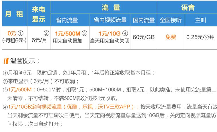 具体来说,针对中国联通这款名为“视频日租卡”的手机套餐,月租6元,第一年处于优惠期,所以月租为0元,但是一年后正常收取基本月租。并且,该套餐还存在6元的来电显示费用,也是不可取消。由此,在月基本费用上,中国联通的这款视频日租卡并不占有较大的优势。在流量上,该套餐1元包500MB的省内流量,用完自动叠加,未使用完流量第二天清凉,不可结转,不满500元部分依然按照1元收取。
