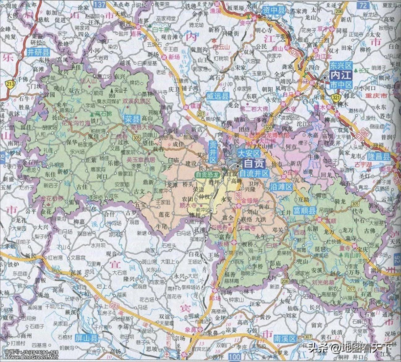 【行政区划】辖自流井、大安、贡井、沿滩4区和荣县、富顺2县。