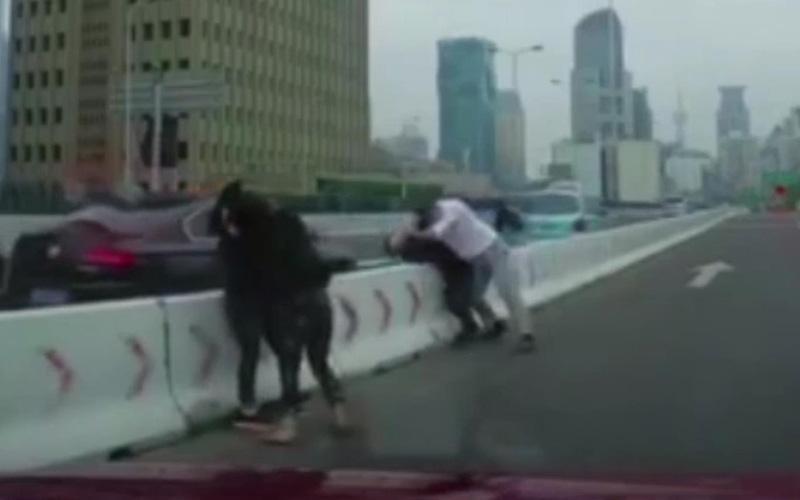 有本事你下来!上海延安路高架上演互殴大戏 不要命还想要人命