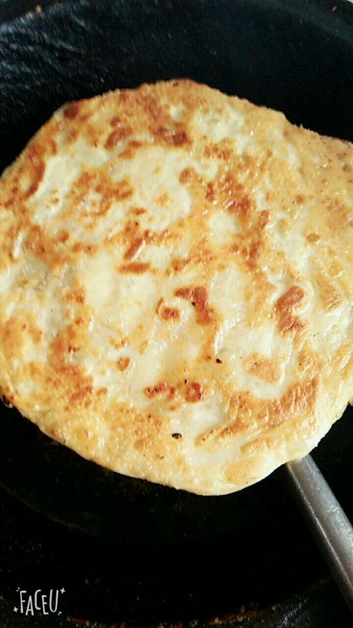 9. 擀成有点厚度的面饼,喜欢薄的也可以煲点,不过那样会很脆