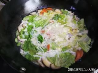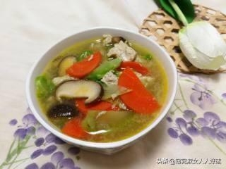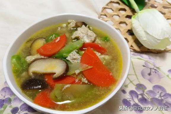 “鲜蔬汤色彩丰富,清淡可口,营养也较均衡,乍暖还寒的春日吃上一碗暖身又暖胃,正好。”
