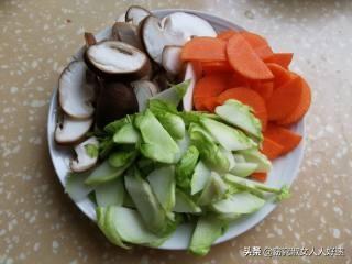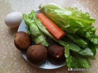 主料: 鸭蛋:适量, 胡萝卜:适量, 儿菜:适量, 生菜:适量, 香菇:适量。