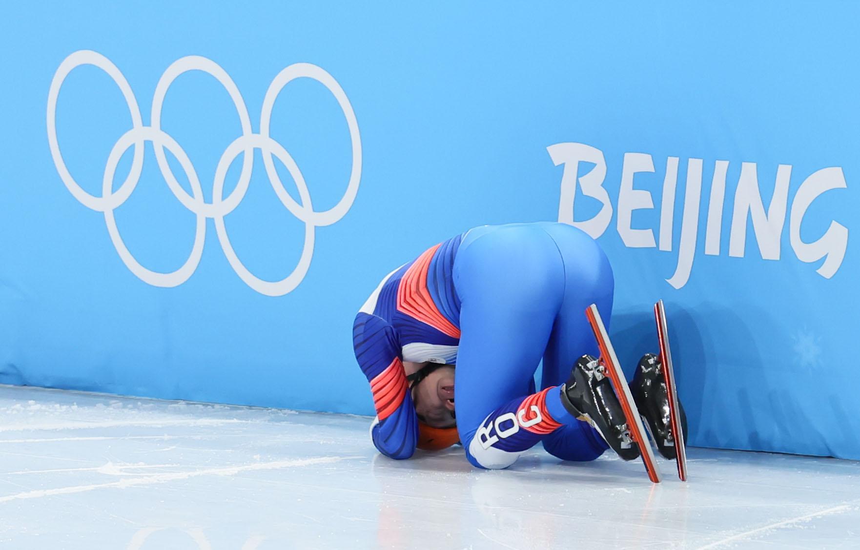 2月9日,俄罗斯奥委会选手西蒙·叶利斯特拉托夫在比赛后。