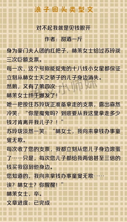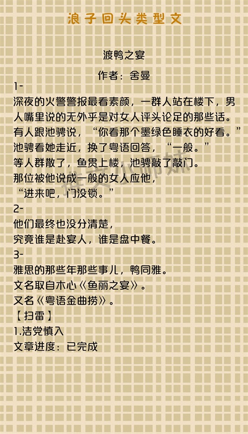 浪子回头系列文,《渡鸭之宴》《对不起我就是见钱眼开》真心不错