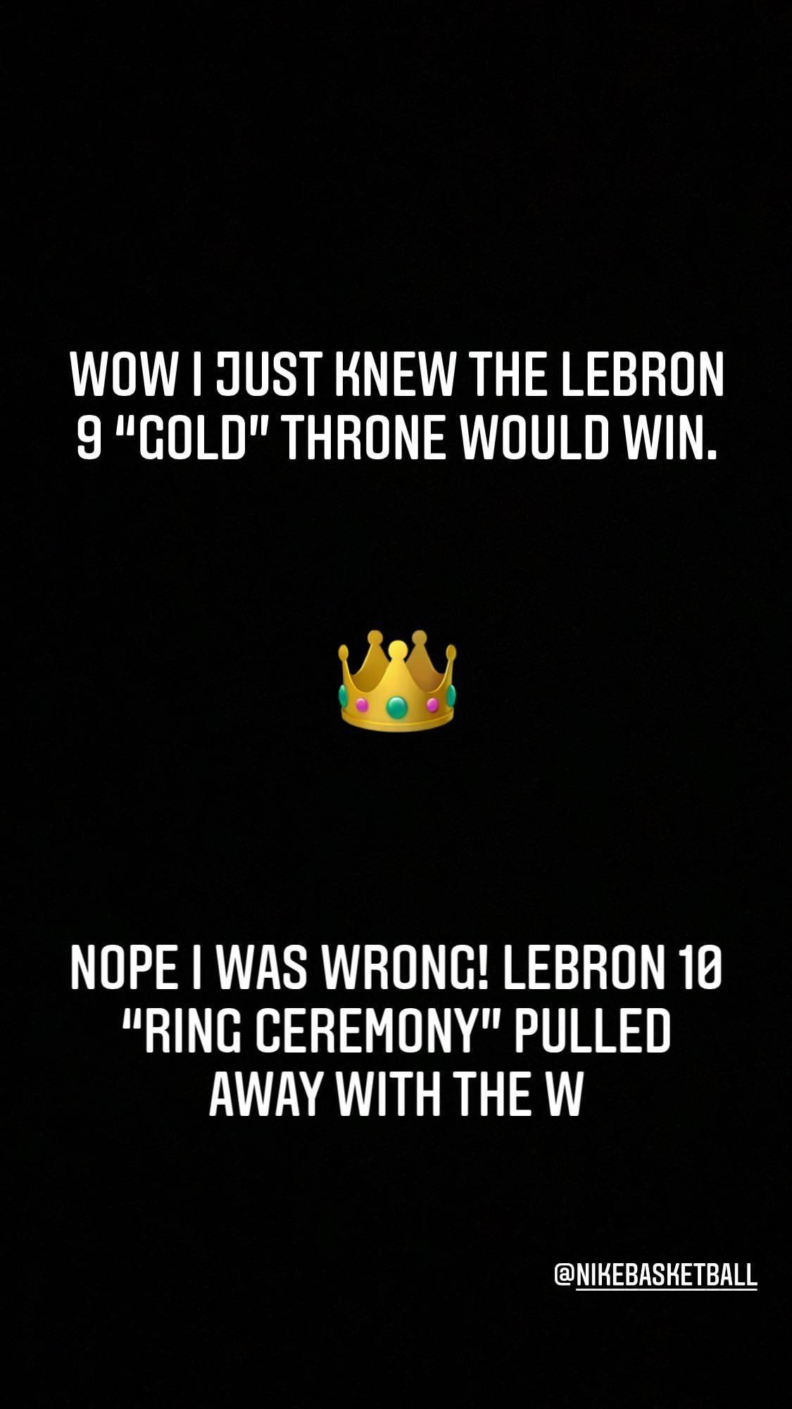 瑭瑰鏂浆鍙戜簡鐩稿叧缁撴灉骞跺啓閬擄細鈥滃搰锛屾垜灏辩煡閬揕eBron 9 鈥楥old鈥?Throne浼氳耽鐨勩€傪煈?涓嶏紝鎴戞兂閿欎簡锛丩eBron 10 鈥楻ing Ceremony鈥?鎷夸笅浜嗚儨鍒┿€傗€?/p>