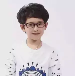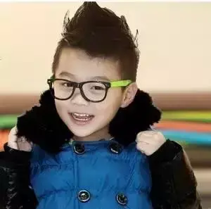 13.这款蓬松上翘的露额头发型,搭配可爱的镜框,阳光般的笑脸,突显十足潮童style。