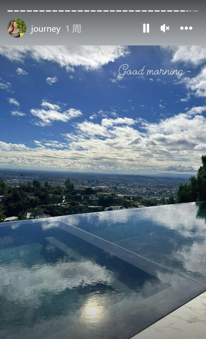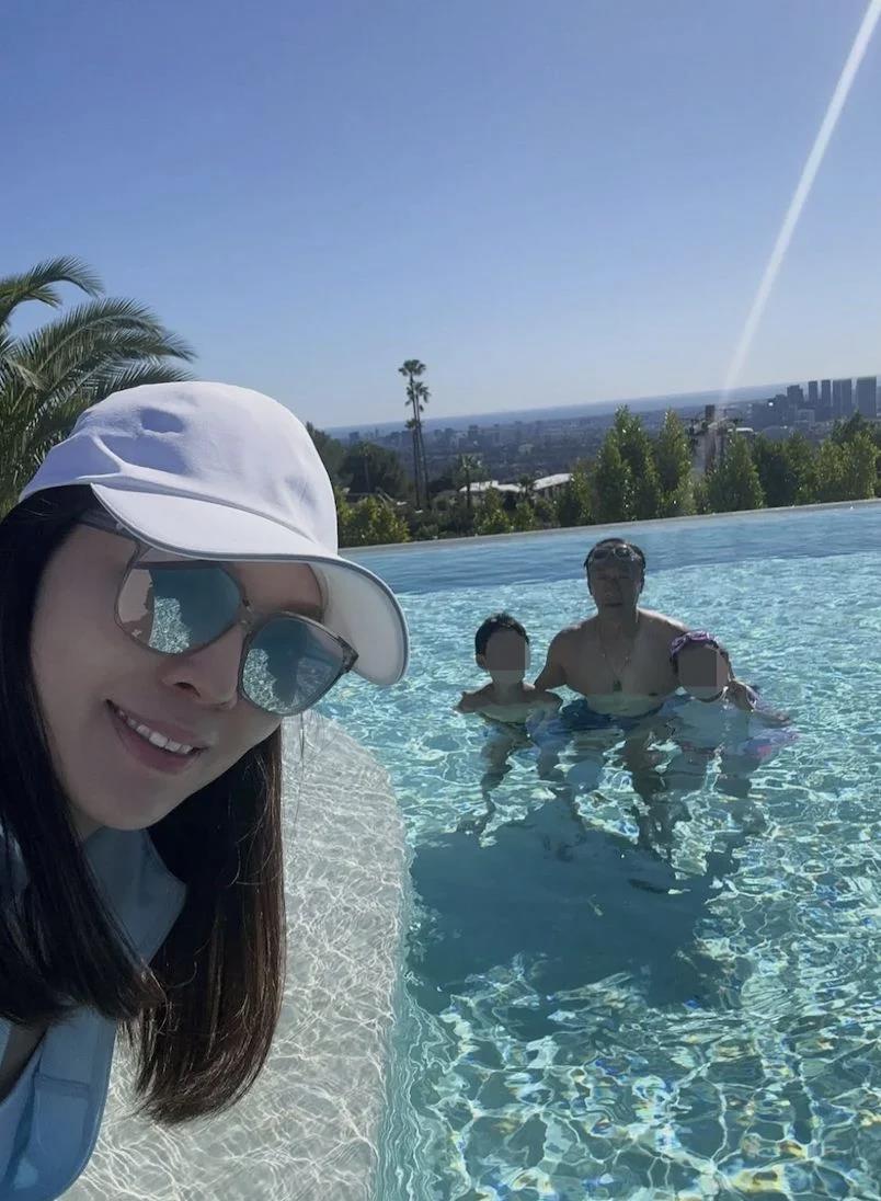 曾馨莹全家在美国洛杉矶度假,72岁的郭台铭亲自育儿,曾馨莹只需要在无边际豪华泳池边美美的自拍。