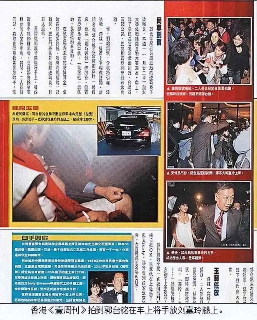 2007年1月,郭台铭与刘嘉玲十指紧扣,出席连胜文的婚宴,两人还一起离席,去了KTV……