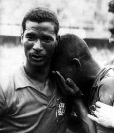 也许贝利是上天为重大比赛而赐的礼物,进入淘汰赛后,这个17岁的少年突然成为了巴西最可怕的武器。1/4决赛1比0胜威尔士,贝利打进唯一进球、半决赛5比2挫败华丽的法国,他上演了帽子戏法,决赛5比2打倒东道主瑞典,贝利又打进2球,帮助巴西第一次捧起了世界杯。关于1958年世界杯,有两个镜头已成为永恒。其一是贝利在决赛中挑过一名瑞典后卫,凌空劲射得分,另一个就是夺冠后,他伏在队友迪迪的肩膀上动情哭泣。决赛那天,贝利只有16岁零239天,这也创造了世界杯决赛参赛以及进球队员的最年轻纪录,一代球王就此诞生!