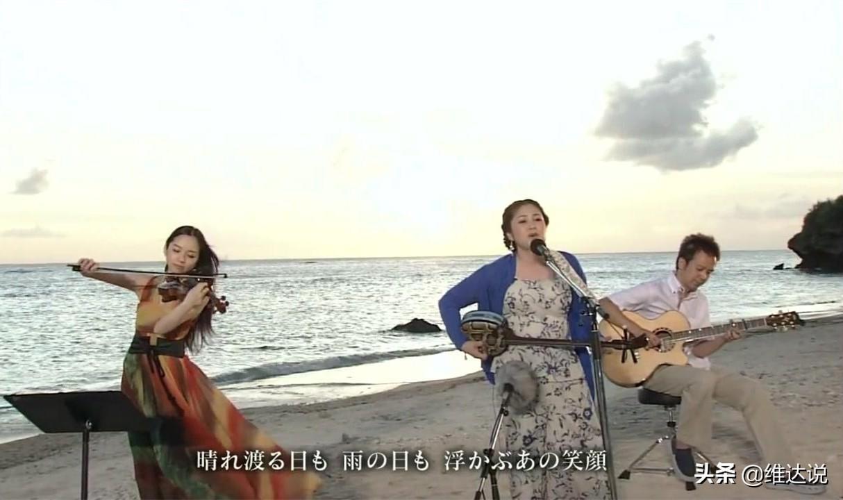 “心灵歌姬”夏川里美的《泪光闪闪》被翻唱了无数版本,如蔡佳淳的《陪我看日出》。图为冲绳海滩演奏该曲。