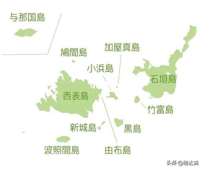 先岛诸岛中八重山列岛的各岛屿分布图