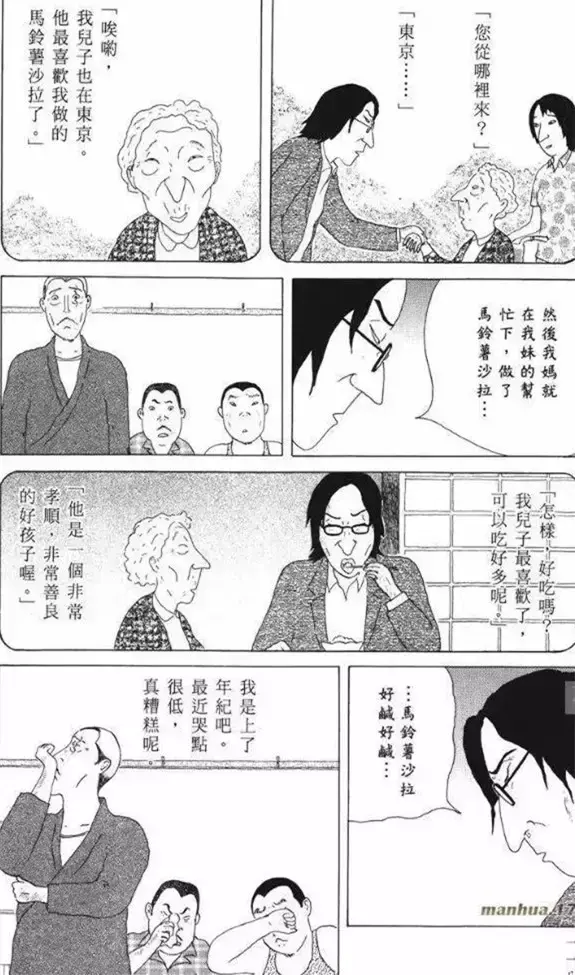 大木说起这件事,眼泪掉到了土豆沙拉里——“这沙拉太咸了。”老板和几位食客听了,也在一旁偷偷抹眼泪……