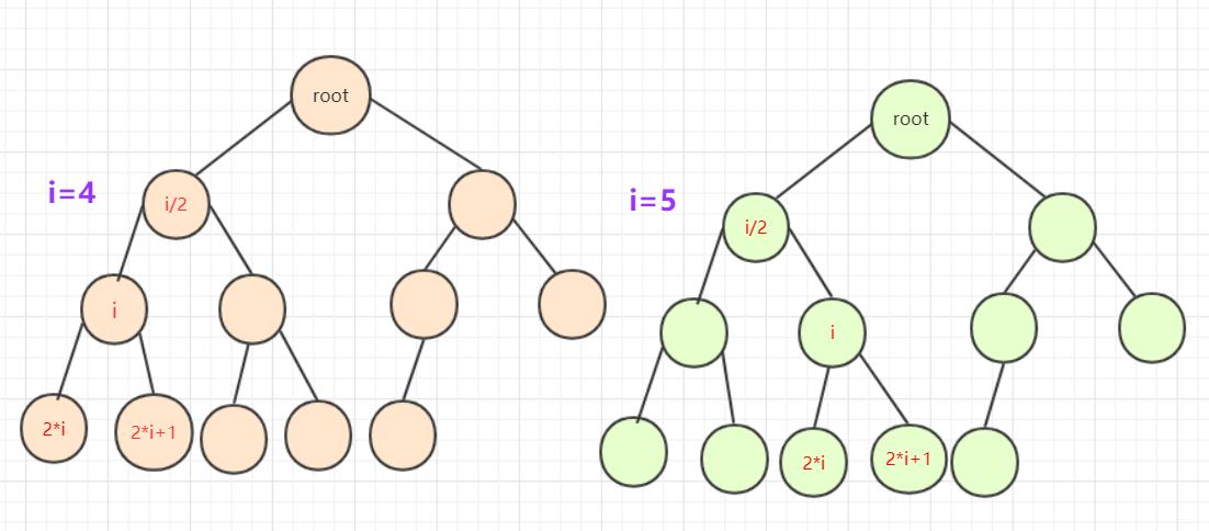 非空二叉树叶子节点数=度为2的节点树+1.本来一个节点如果度为1.那么一直延续就一个叶子,但如果出现一个度为2除了延续原来的一个节点,会多出一个节点需要维系。所以到最后会多出一个叶子。非空第i层最多有2i-1个节点。高为h的树最多有2h-1个节点(等比求和)。完全二叉树若从左往右,从上到下编号如图: