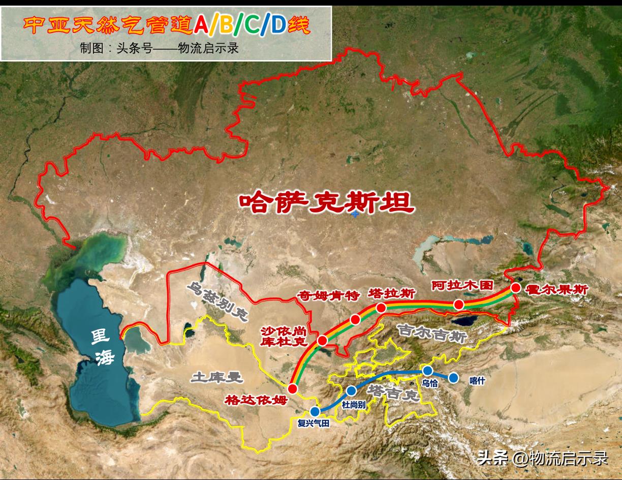 中国-中亚天然气管道是我国首条从陆路引进的天然气跨国能源通道,采用A/B/C三线并行的输入方式,气源来自土库曼斯坦、乌兹别克斯坦和哈萨克斯坦。