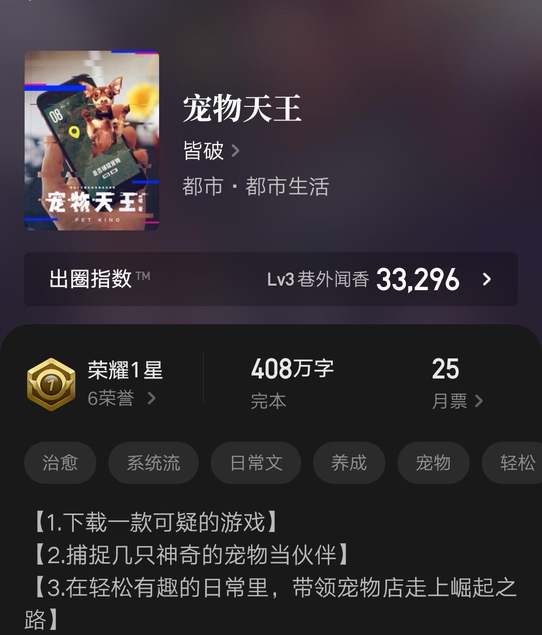 每个宠物都有特殊能力,而主角没有因为这些能力做出不符合他三观的事。逻辑合理,情节精彩,很多小片段分外感人。我本人推荐大家看这本啊!