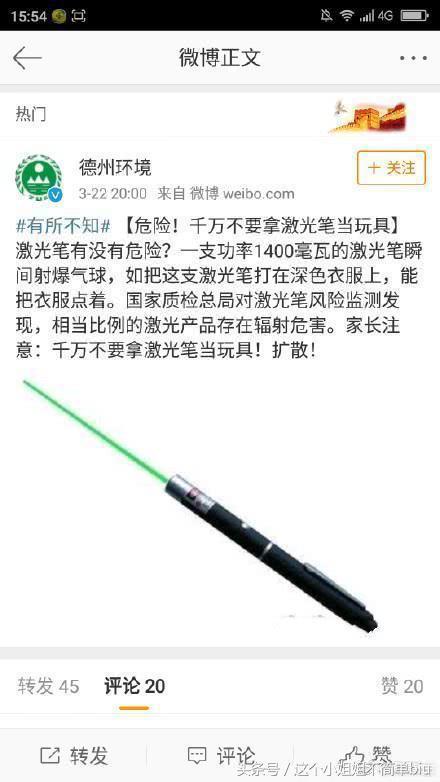 不得不说这位博主的言论真的是很惊人,竟然会以为激光笔对人没有伤害,作为一名微博上的公众人物竟然说出这样不负责任的言论,看来人品真的很差。