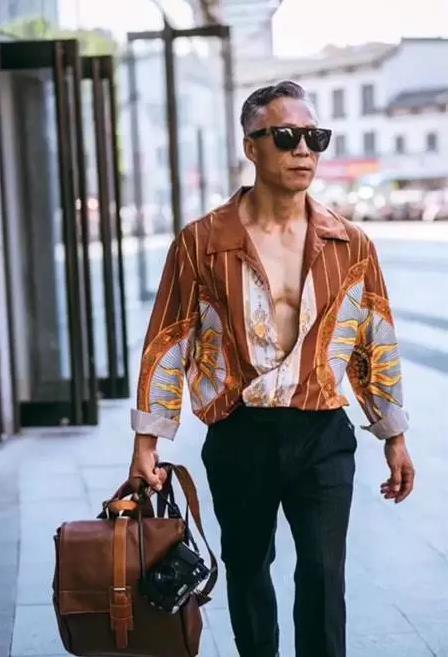 这位大爷来自江苏徐州,网名是最潮刘老头。的确。刘老头英俊的面貌,一身的腱子肉,穿着还时尚,的确对得起这个称号。