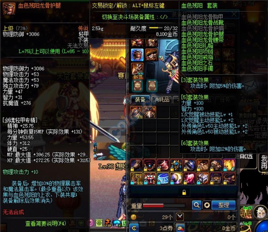 DNF“血色残阳”套装跨甲套装属性叠加可行性测试