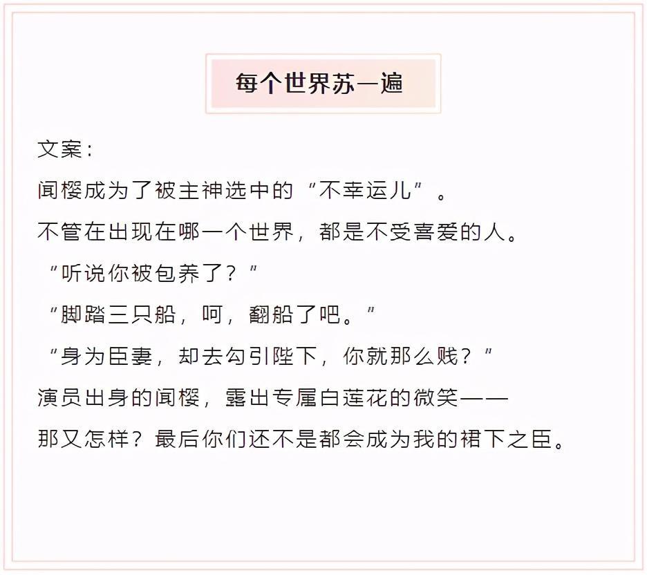 推荐几本高质量的无CP快穿文:又苏又爽
