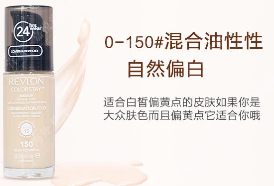 150色号适合混合油性皮肤的妹子。不是很白,有点偏黄皮肤的妹子可以选择这个色号。切记,上妆前要做好保湿工作。说24小时不脱妆略带夸张了。露华浓这款粉底液遮瑕不错,略厚重,用量的时候注意哦。百元内买到30ml的粉底液,况且功能算不错了,学生党可尝试这款。晚上做好卸妆就行。