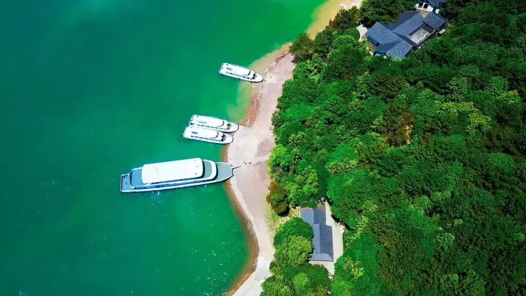 千岛湖站设在杭州的淳安县。绿山、清水、翠岛,这里的一切都泛着幽幽的青,连烟、雾、霭、气、雨也都透着丝丝绿意。