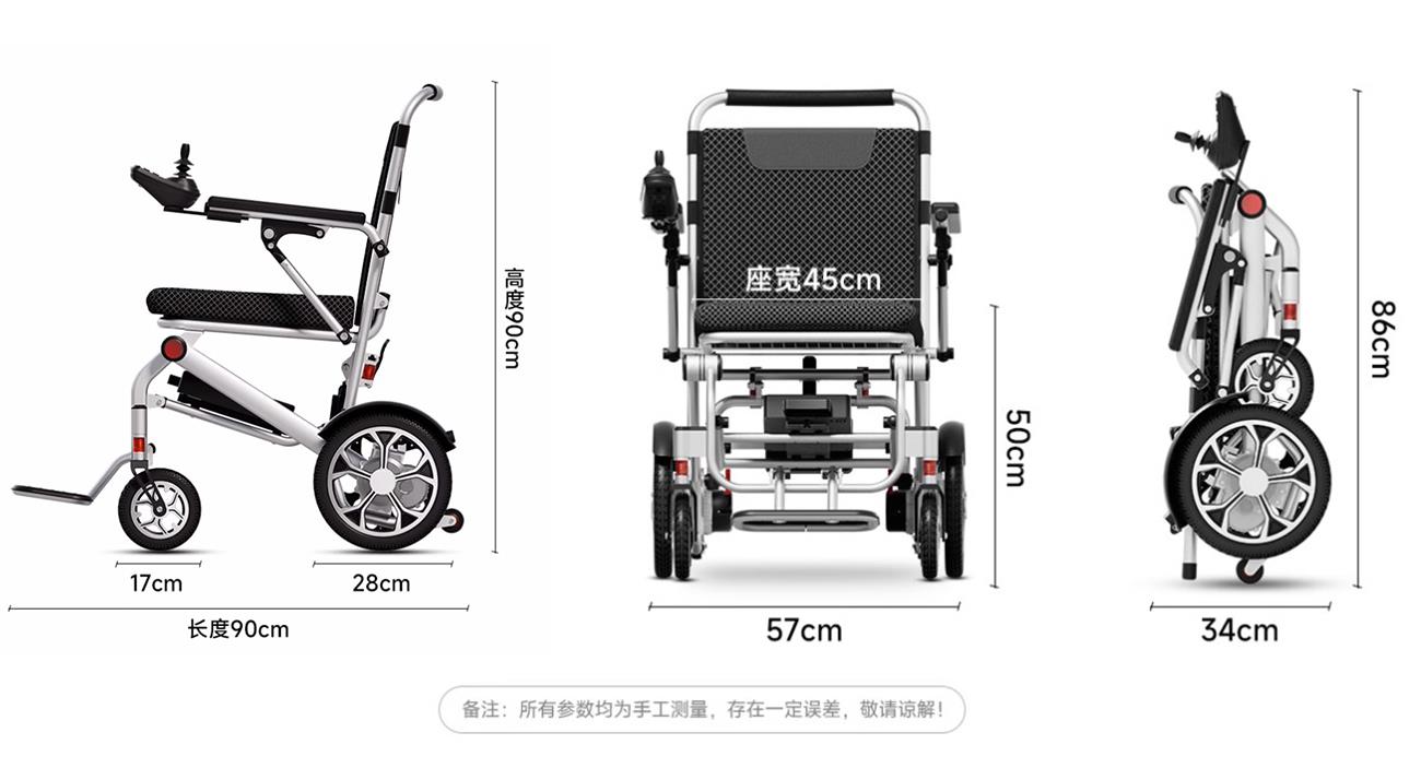 如果使用者不仅追求轻量,还有爬坡方面的需求,那么大力我推荐下面这款大马力轻便型电动轮椅↓↓↓
