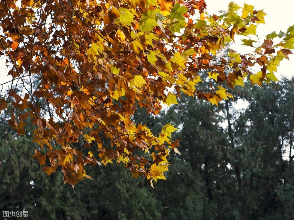 16、《梧桐》梦回历历雨声中,窗影分明晓色红。出户方知是黄叶,更无一片在梧桐。