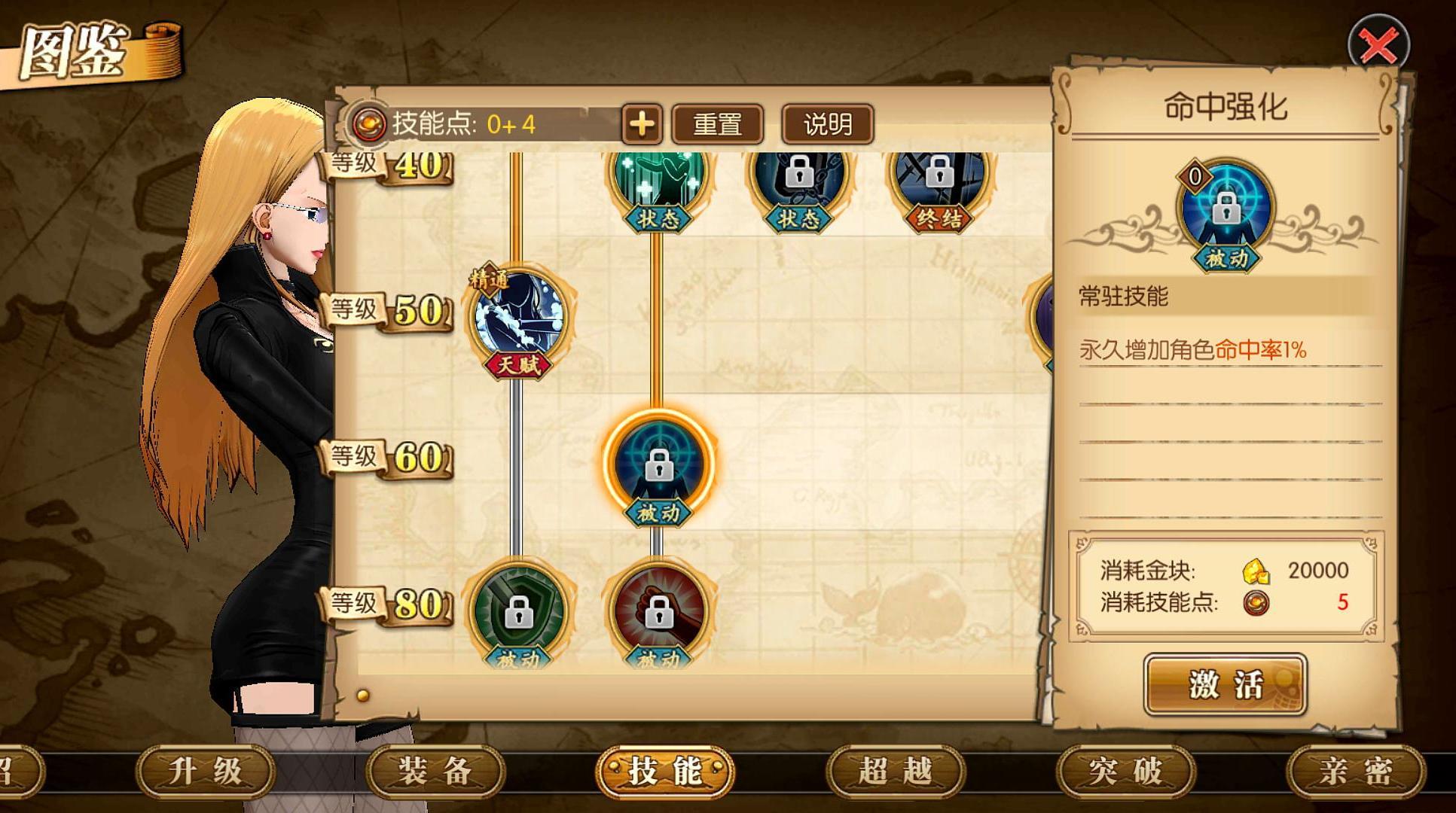 命中强化点满。被动技能,还是尽量要点的。
