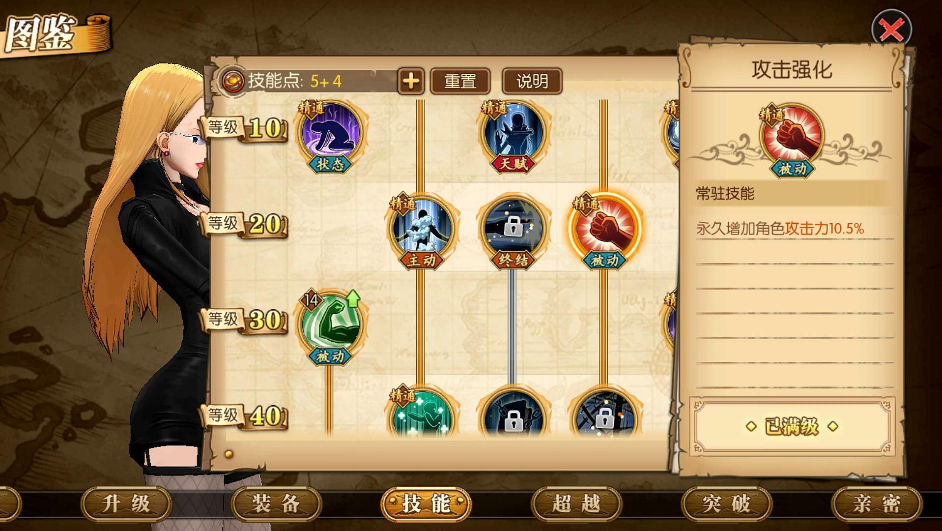 攻击强化点满。被动技能,尽量点满。