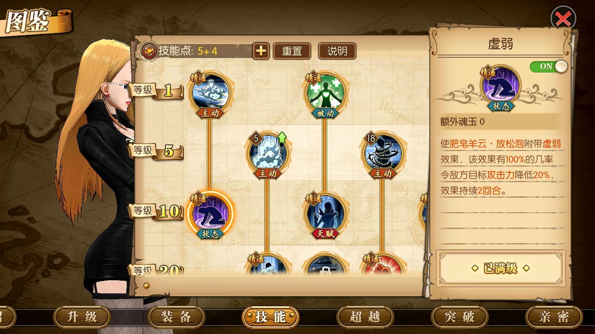 虚弱点满。放松泡的状态技能,可以降低目标的攻击。