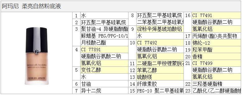 如果你细心观察的话, 会发现这6款粉底液中, 后来出的5款都添加了红色标注的成分