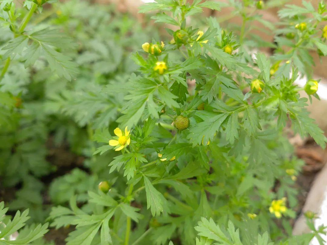 朝天委陵菜的叶子,打眼一看,跟香菜(芫荽)有点儿像,故而还有个「野香菜」俗称,当然,熟悉的老农,一眼就看出它们的不同。