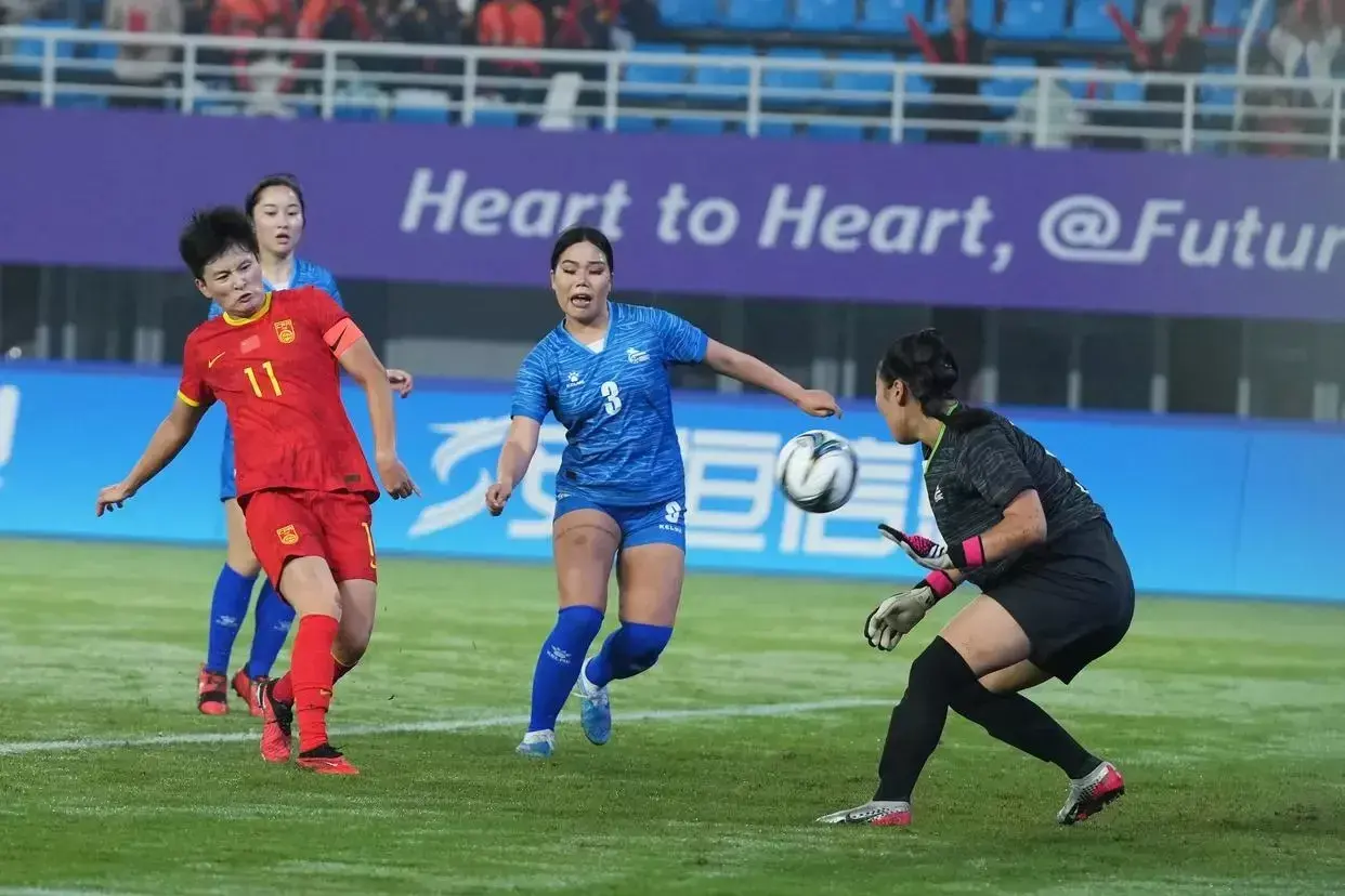 第76分钟,中国女足首次射门被扑出,张馨接球晃过防守后,近距离劲射入网,中国女足进一步扩大优势至13-0。
