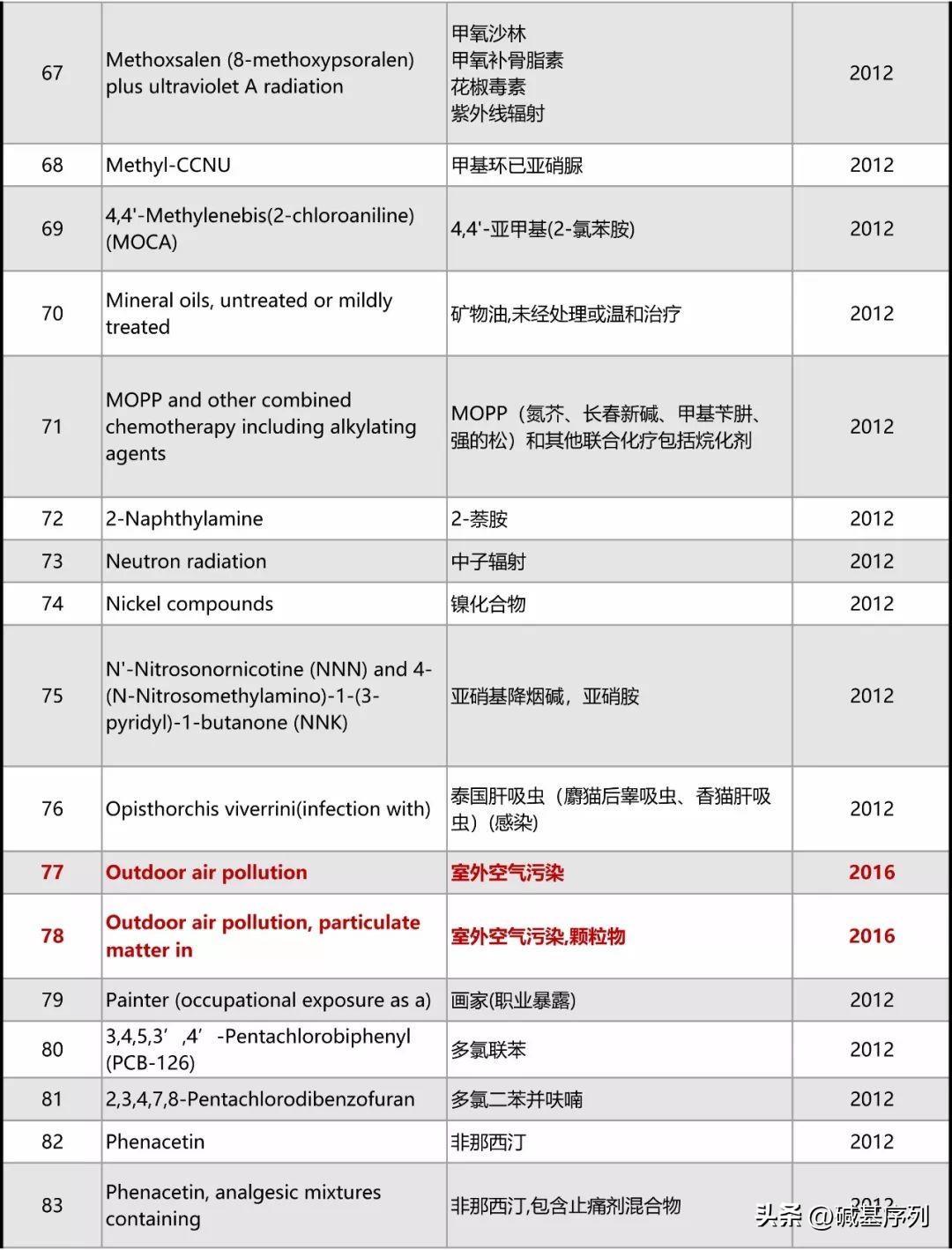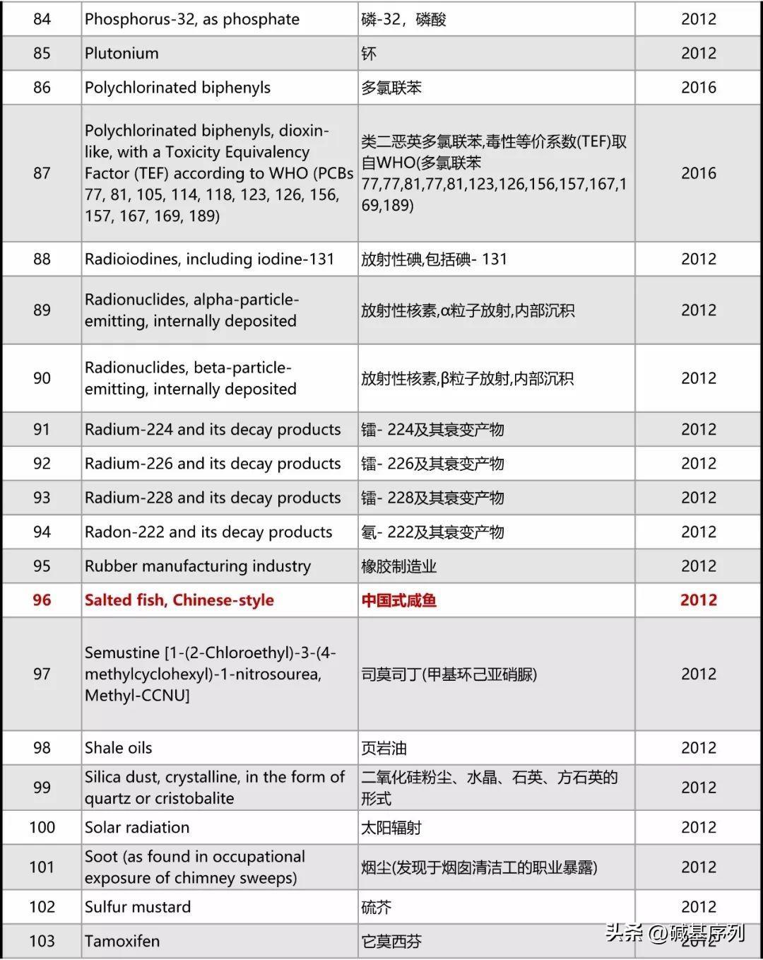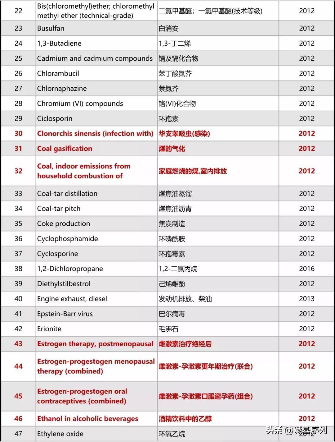 以下为最新致癌物的完整清单。
