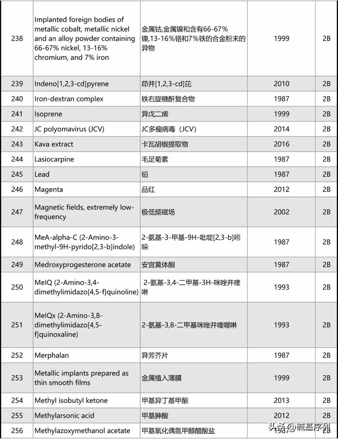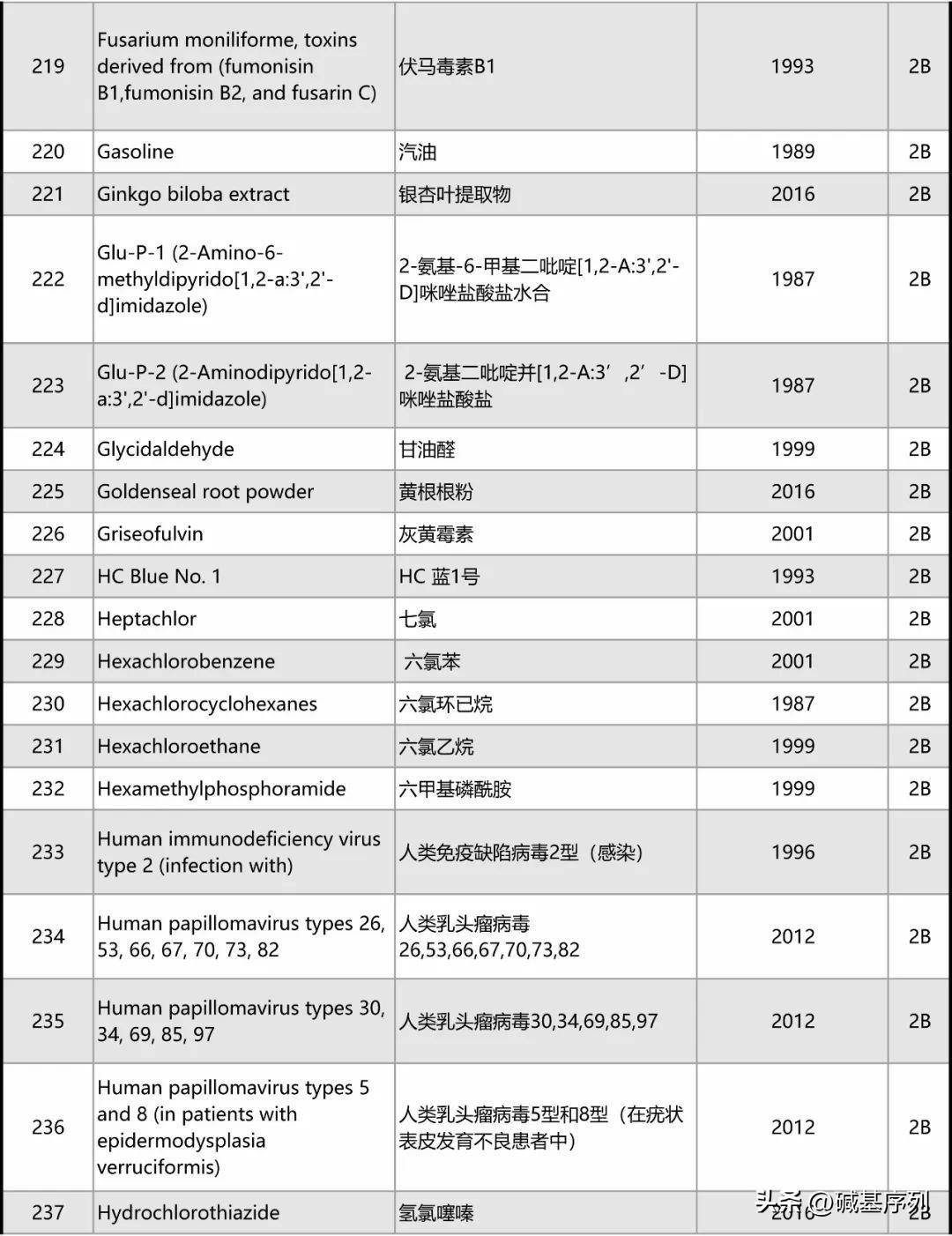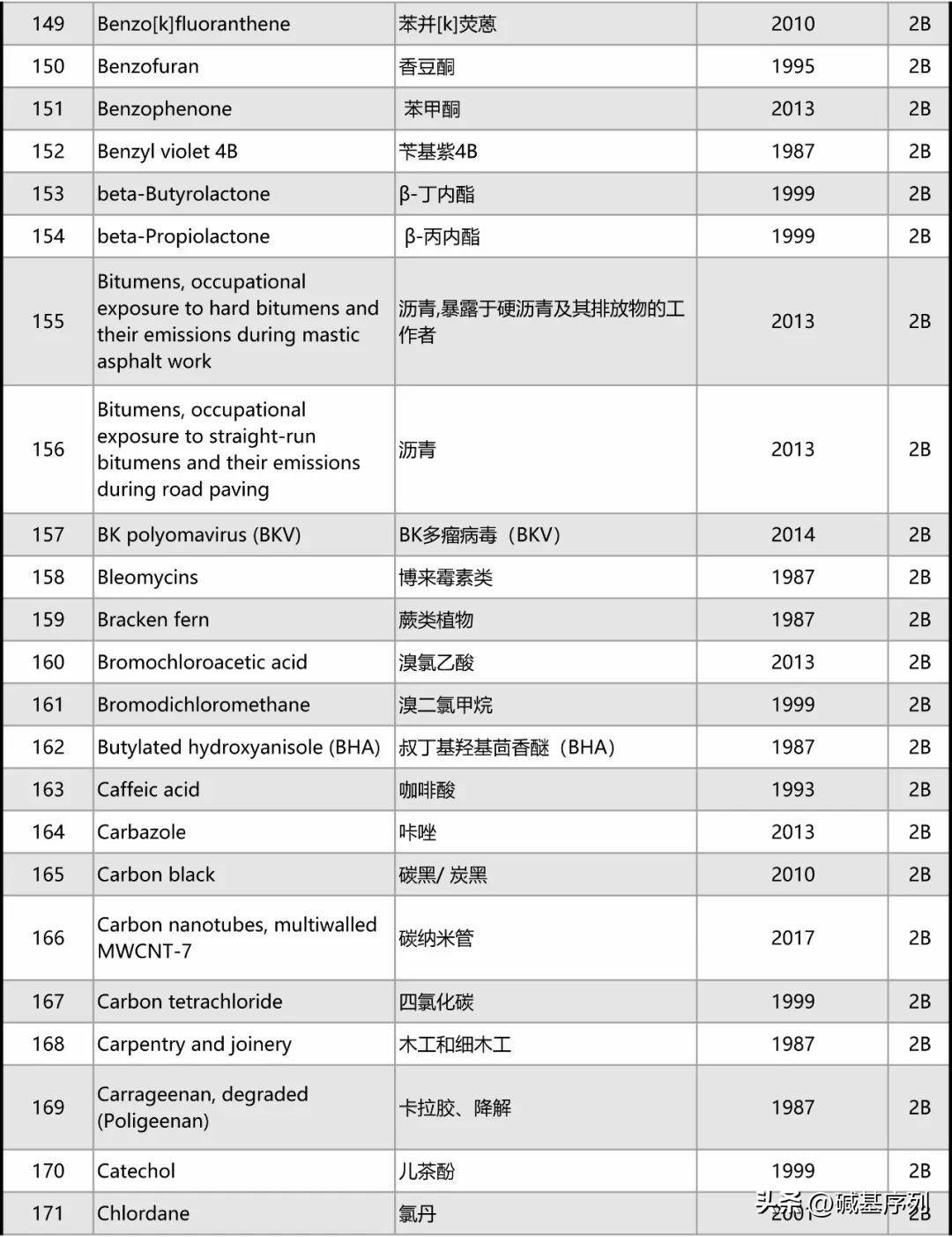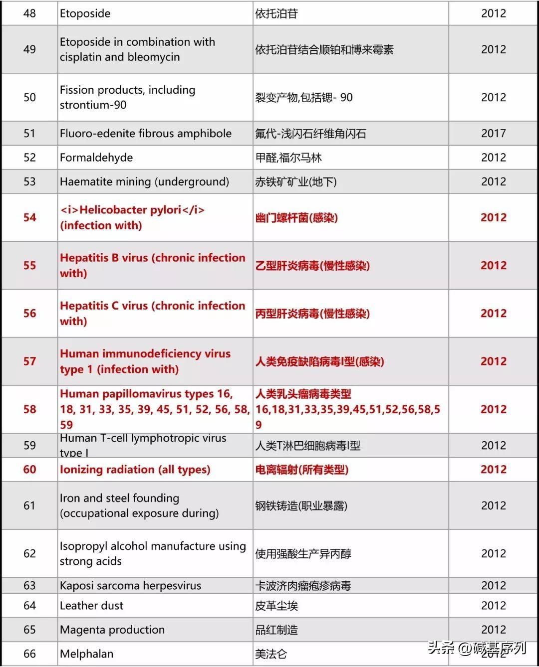 以下为最新致癌物的完整清单。