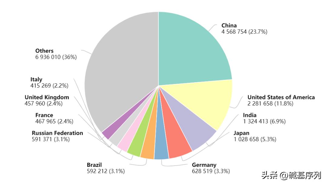2020年各国癌症新发病例数