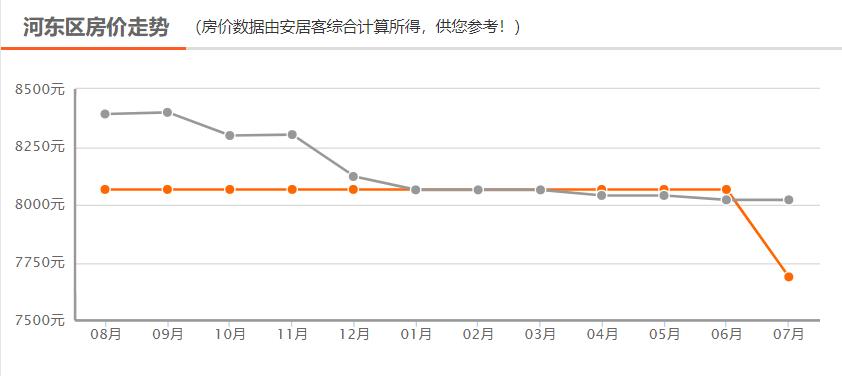 【河东区】:7月新房均价7688元/m²,6月新房均价8066元/m,环比上月下降↓4.69%。