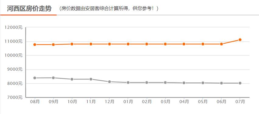 【河西区】:7月新房均价11115元/m²,6月新房均价10806元/m,环比上月增涨↑2.86%。
