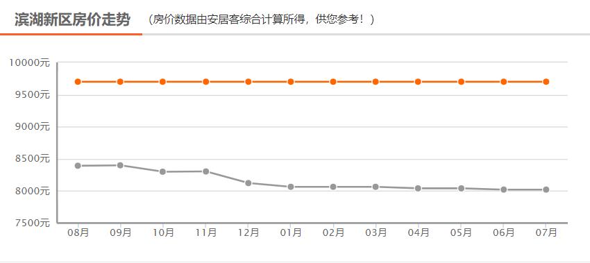 【滨湖新区】:7月新房均价9700元/m²,6月新房均价9700元/m,环比上月持平。