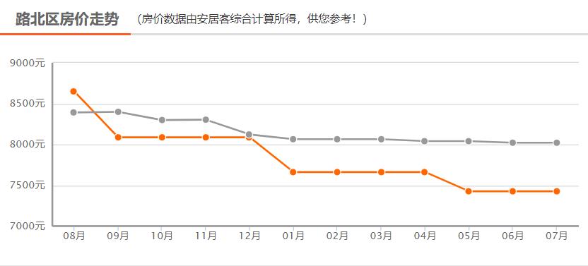 【路北区】:7月新房均价7426元/m²,6月新房均价7426元/m,环比上月持平。
