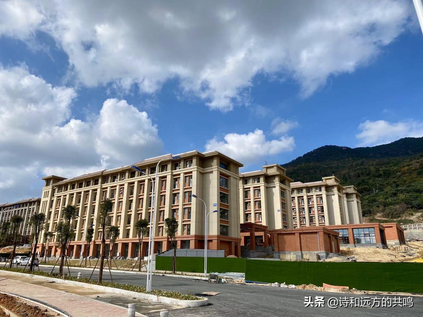 院新校区,稍显遗憾的是这两个校区并没有连接在一起,两个校区相距三四公里。莆田学院新校区位于西天尾镇渭阳村,背靠紫霞山,由荔港大道左转至紫霄路尽头;而湄洲湾职院位于梧塘镇,背靠九华山,“九华叠翠”也是莆田二十四景之一,交通更便利,紧靠荔涵大道,出行较为方便。两个新校区依山傍水,古有郑露三兄弟南山脚下筑庐看书,结束莆陽大地蛮夷时代,开启文献名邦的诗篇,今有紫霄山、九华山下的莆田学院、湄职院新校区的朗朗读书声,重新点燃了莆田“十室九学堂、龙门半天下”盛世文风的火种,重现莆田人文高地,弘扬莆田文献名邦。