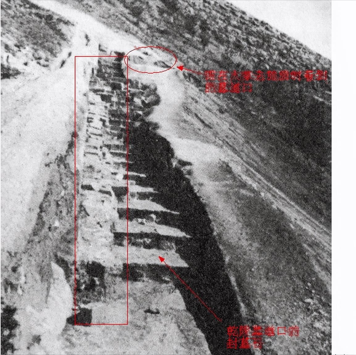 1960年2月,陕西成立了乾陵发掘委员会开始发掘乾陵,据记录,这条墓道长约63.1米,宽约3.9米,为类似于台阶的斜坡形,由石条堆砌共39层。每根石条都有2吨重,而且在石条的两头分别都有一个凹槽,凹槽上都卡了一个约100公斤重的铁栓板,这样石条就能牢牢的固定住,而且缝隙处还用锡铁汁进行了浇灌,形成了一个牢牢的整体,所以想从墓道口进去难度非常之高。