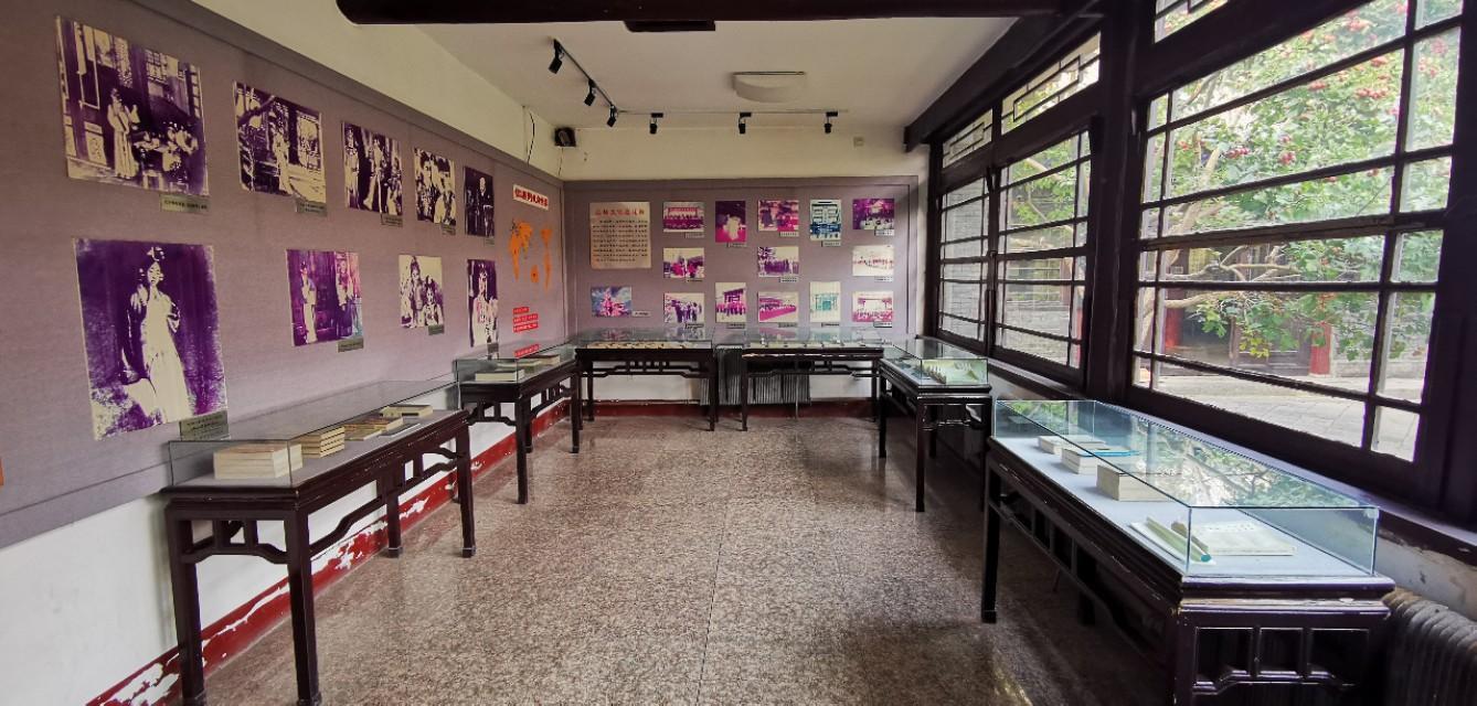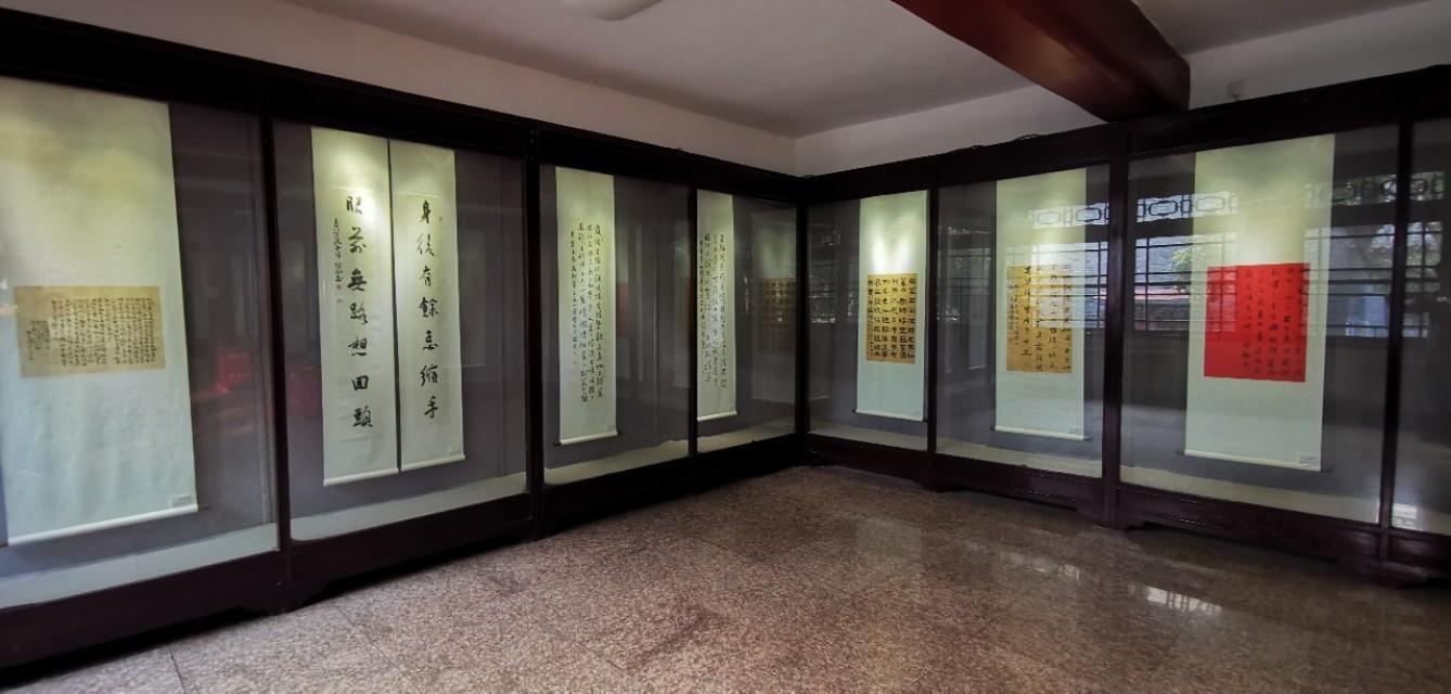 一进入纪念馆大门,门口小院的正中间有一座曹雪芹坐着的塑像,塑像的底座上雕刻着曹雪芹祖籍辽阳的历史渊源。纪念馆利用主体建筑房屋,开办了四个展厅,分别为“曹雪芹生平”、“曹雪芹祖籍辽阳”、“曹氏望族”、“著书黄叶村”。