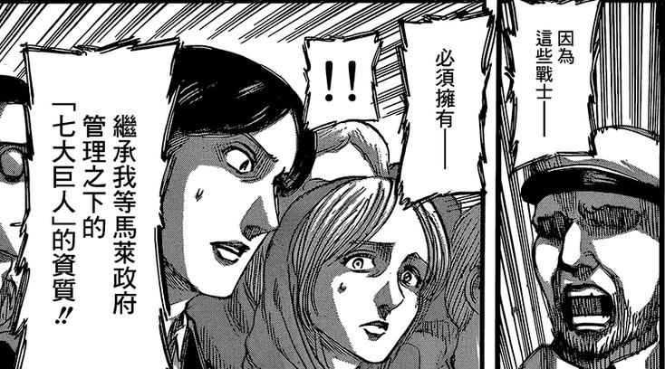 之后就是格里沙在墙内生存,并生下了艾伦,之后吞噬了雷伊斯家的始祖巨人,并将进击巨人和始祖巨人之力传给了艾伦。后面就是艾伦上场的事情了。最新剧情介绍的是马莱国的事情,特别有意思,发现了车巨是个大美女。这个车巨劳动力被压迫的也太厉害了,两个月没有变回人形,马莱国太可恶。