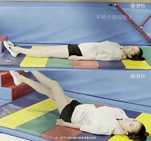 这个动作看起来很简单,但可以让大腿内侧变得更加紧致的动作,杨幂也提点「注意,双腿分开的幅度越大,效果越好!」