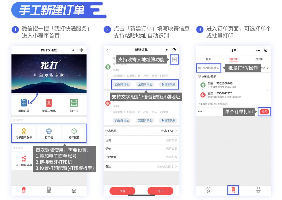 快递打单小程序 - 智能录入订单,蓝牙便携打印