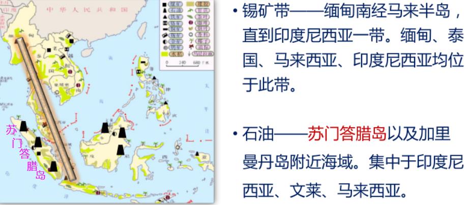 苏门答腊岛面积约43.4万平方公里,是世界第六大岛屿,岛上矿产资源、化石能源储量丰富【图7】。特别是,苏门答腊岛处于世界著名的锡矿带上,锡矿储量丰富;化石能源方面,苏门答腊岛及其附近海域煤炭、石油储量丰富。文莱就是依靠开发海上石油而发展迅速。