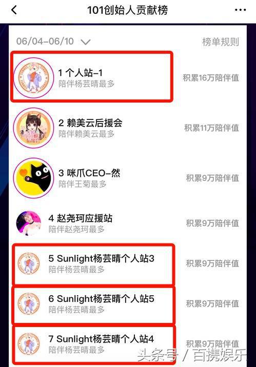 粉丝爆肝,排名还是不升反降,昨天播出的《创造101》的节目里sunnee是第11,但是腾讯的创始人贡献榜里却是前七个里有四个都是sunnee的粉丝。