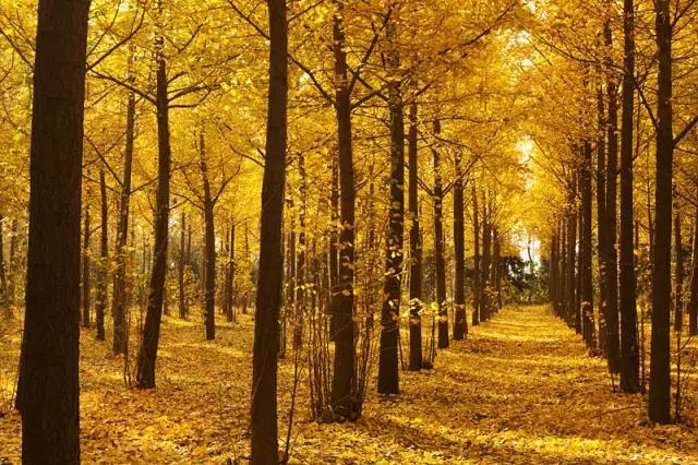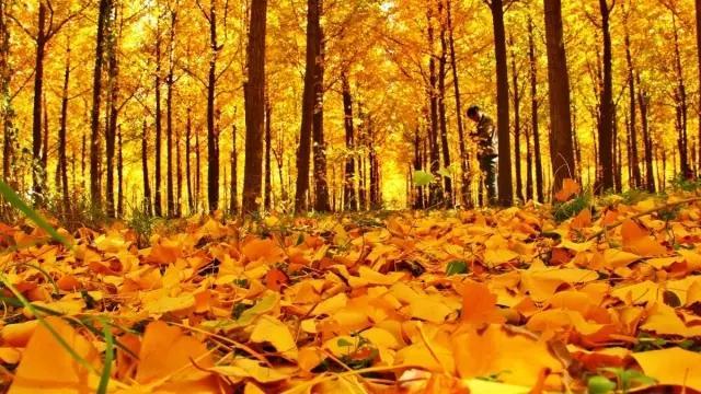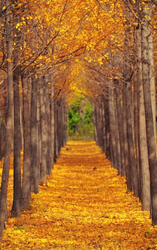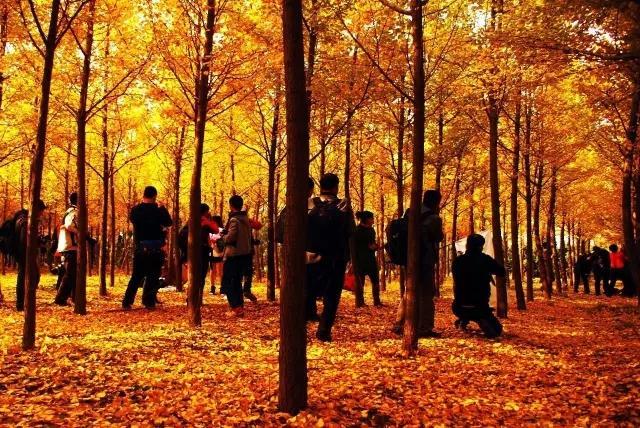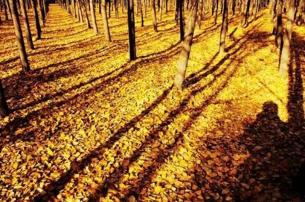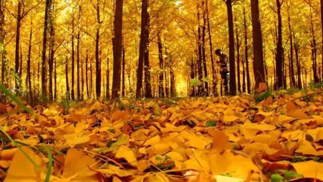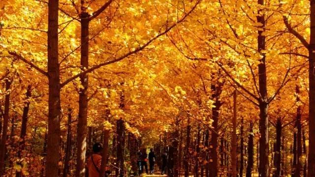 占 地 100 亩 的 银 杏 林,上 万 棵 银 杏 树仿 佛 一 夜 之 间 披 了 一 件 金 色 的 战 袍!