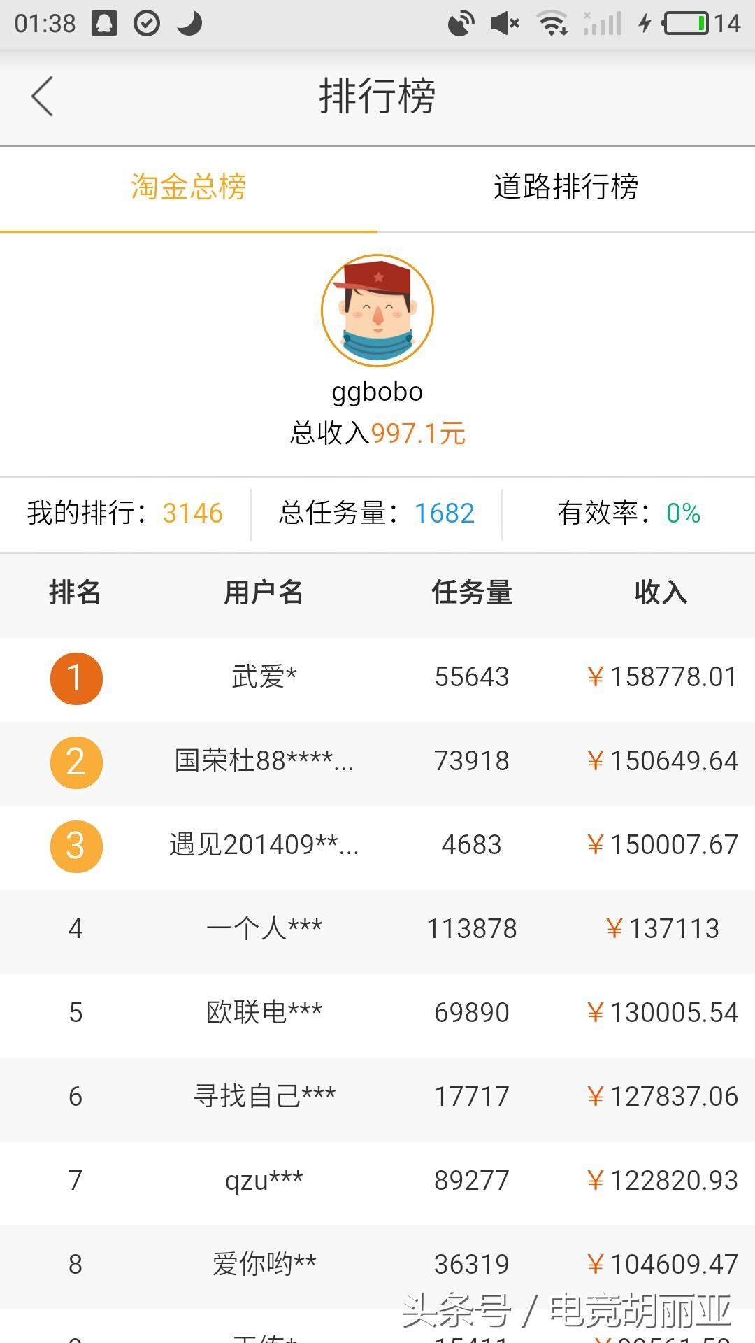 这是我在高德淘金上挣的钱,第一名最高挣了15.8w,看来是职业做这行的,我拍了1682张,其中有些审核不过和单价低的(比如店铺搬迁只给几毛,店铺不存在等),其他的都平均在1元以上,如果做久了可以申请核心用户任务会更多,工资也更高。